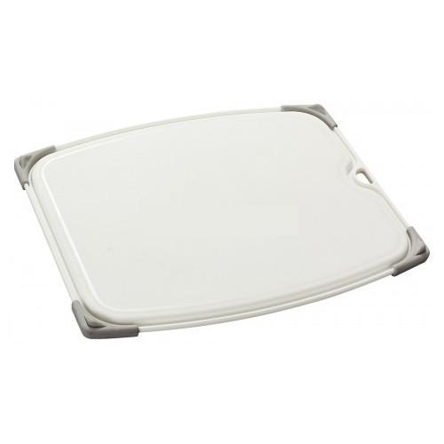 Moderno tagliere in materiale plastico alimentare utilizzabile su entrambi i lati, con angoli antisdrucciolo. Lavabile in lavastoviglie.